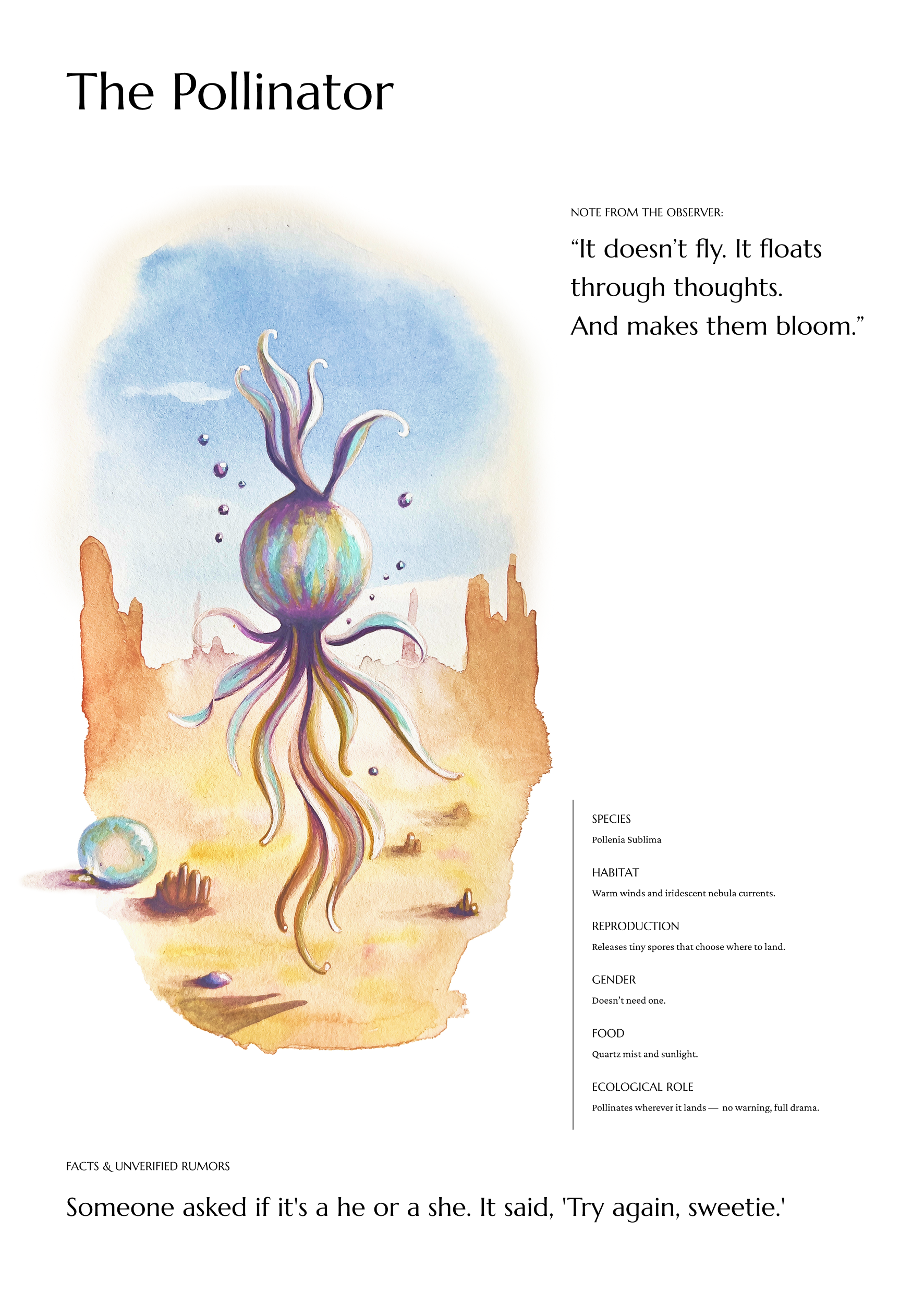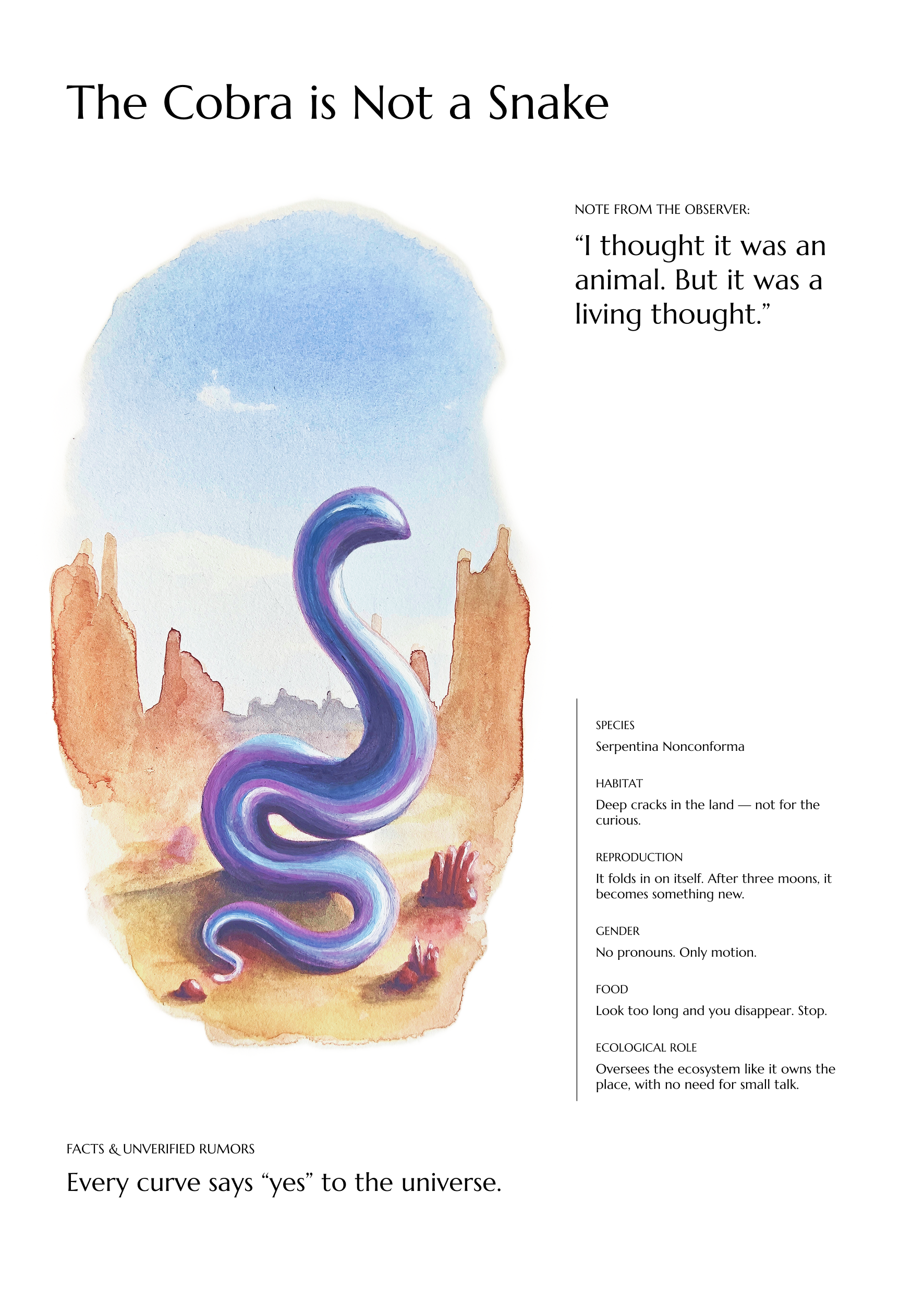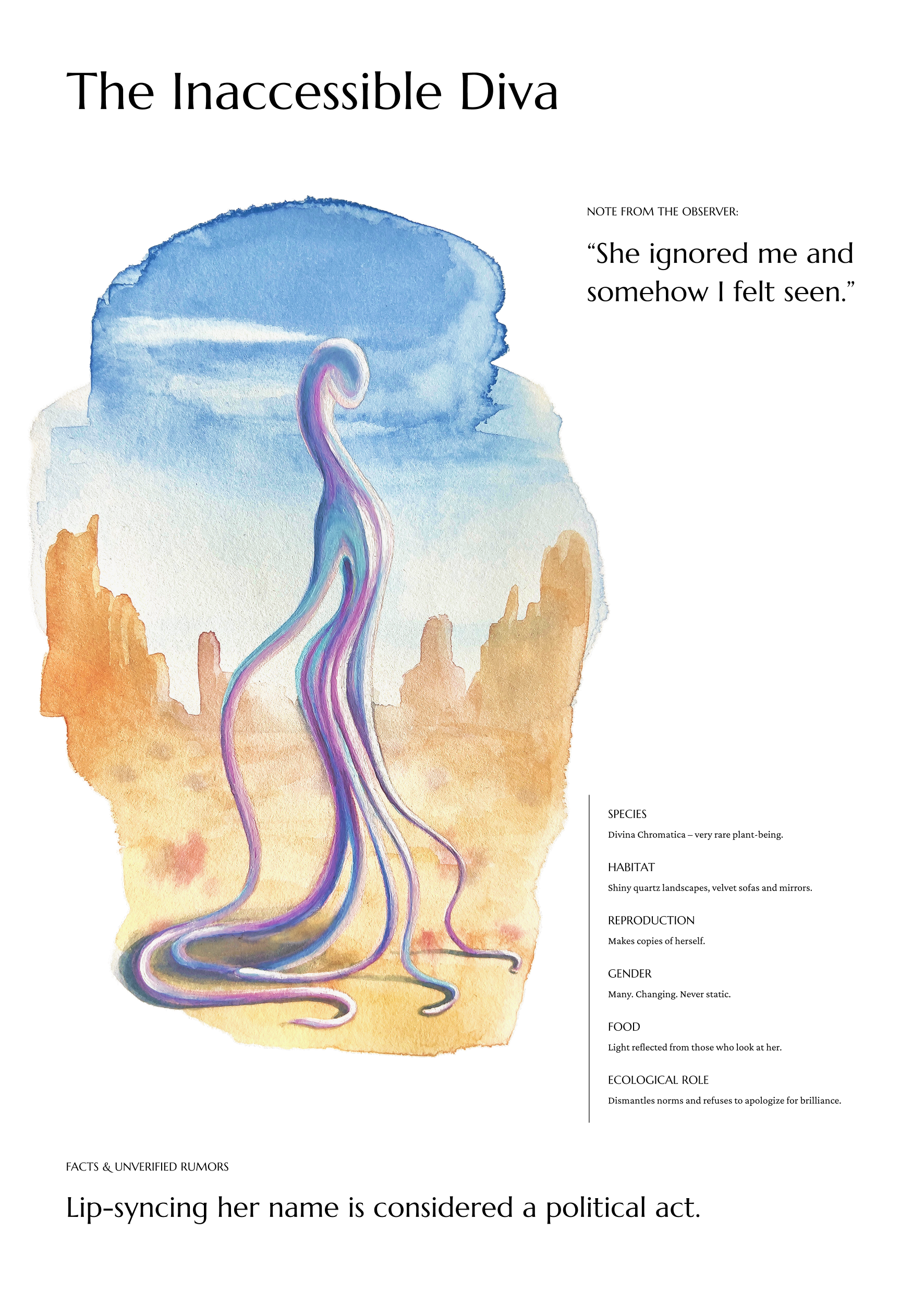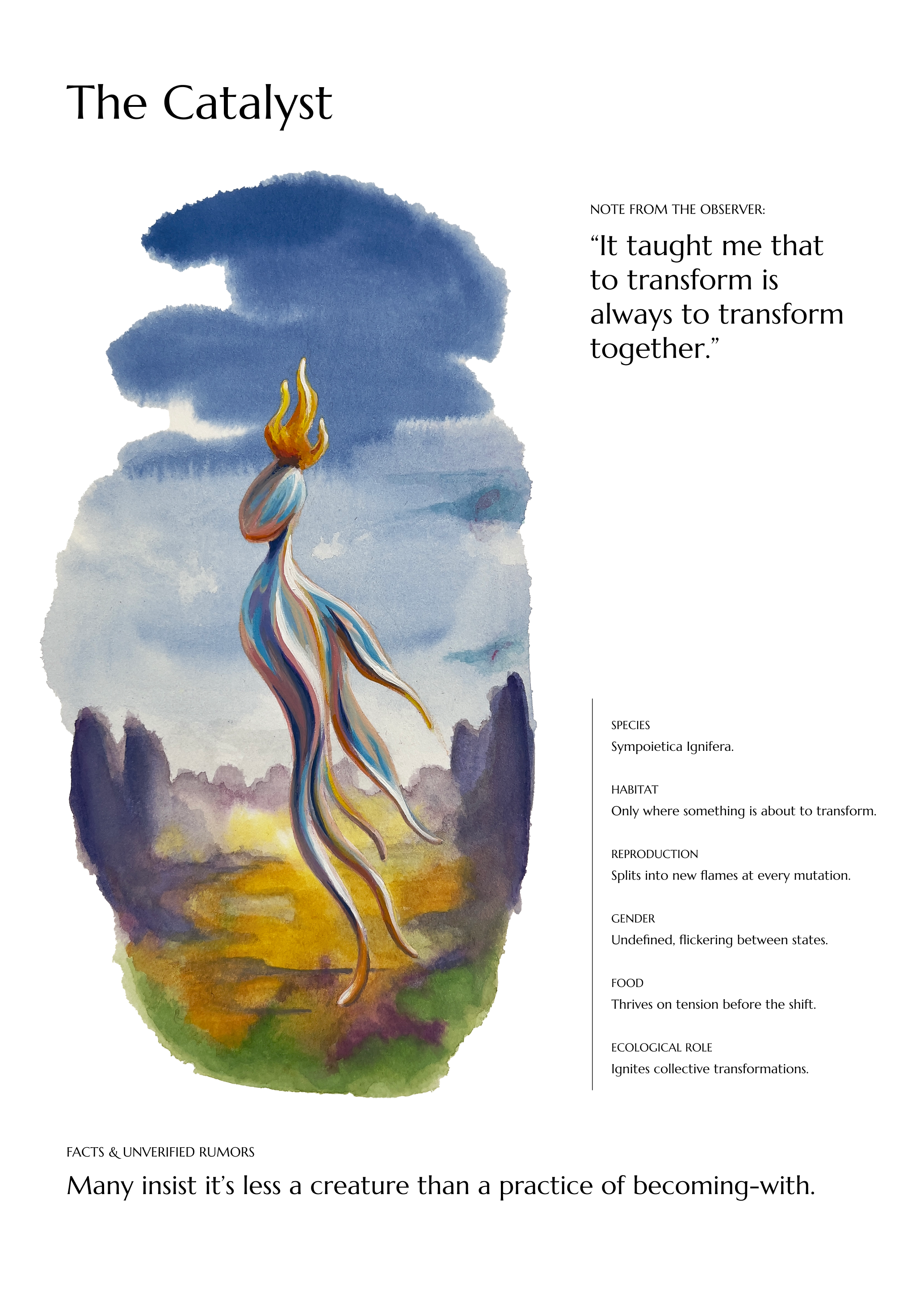 Inspired by the taxonomic fantasy of Luigi Serafini’s Codex Seraphinianus, Caterina designed her own bestiary: a collection of creatures that blur the lines between taxonomy, fiction, and identity.