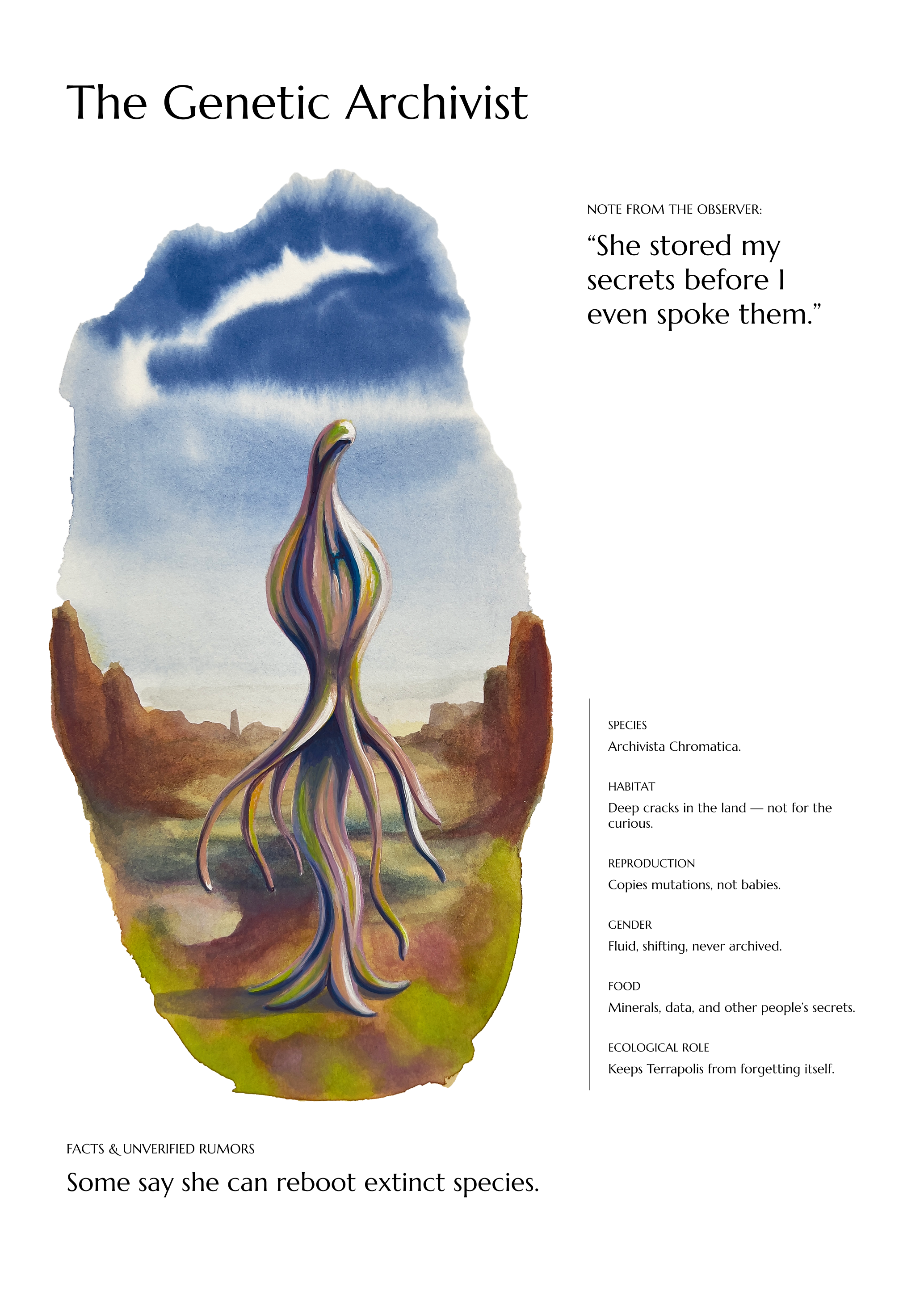 Terrapolis is a speculative planet where hybrid creatures and ecosystems take shape. These signed and numbered prints make that vision tangible and accessible. I believe art should go beyond the art market and belong to everyone who wants to live with it.