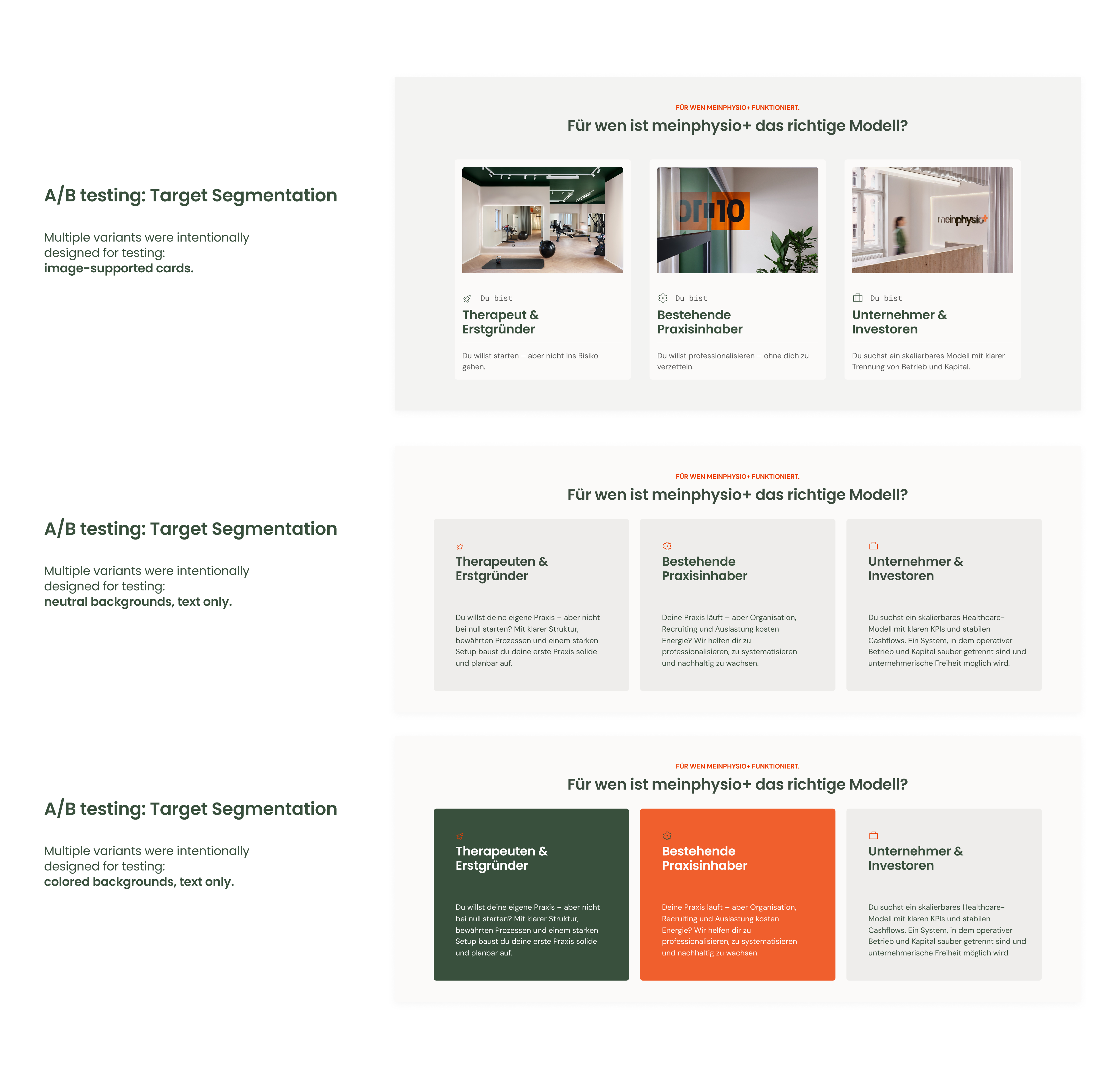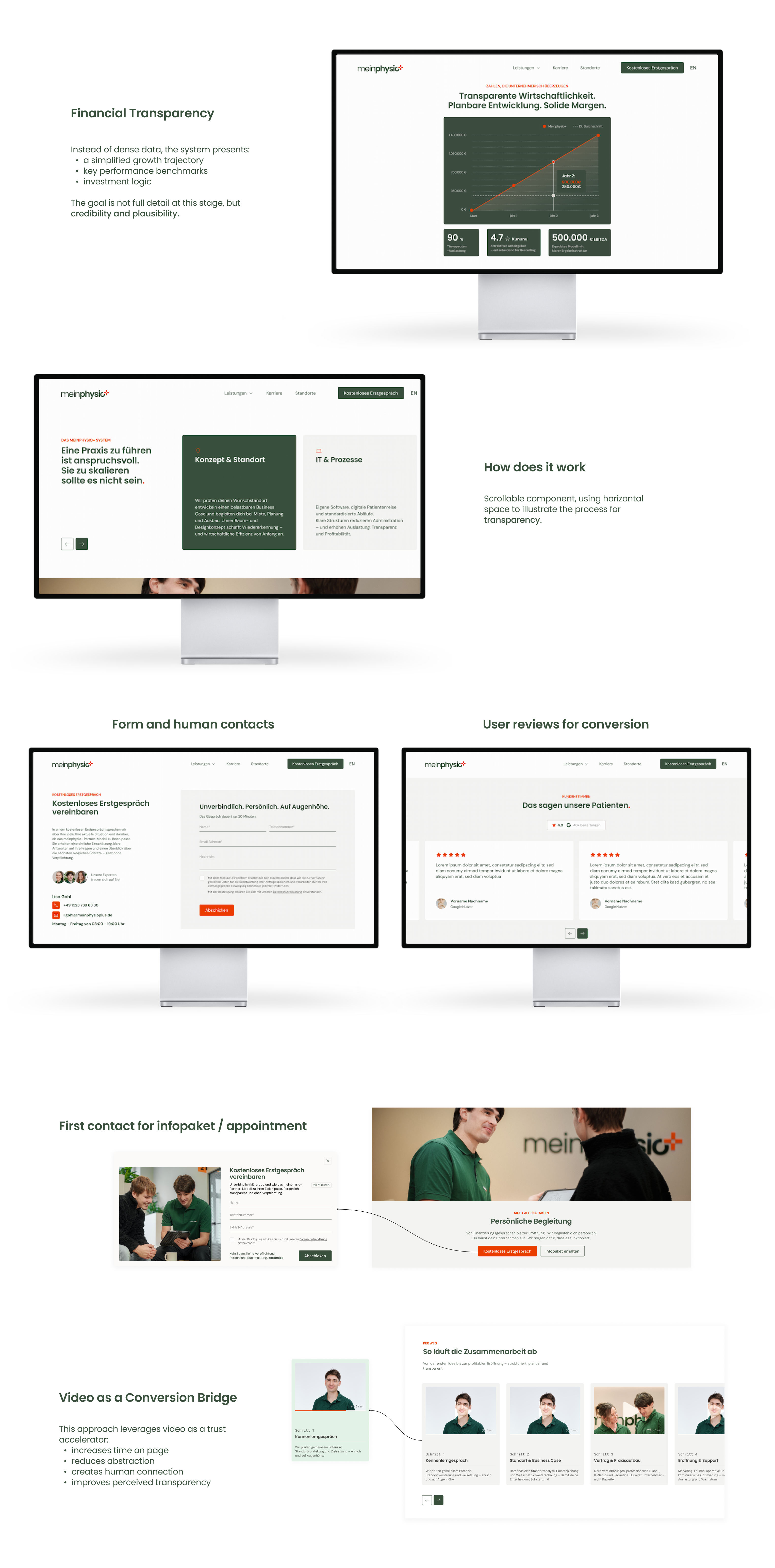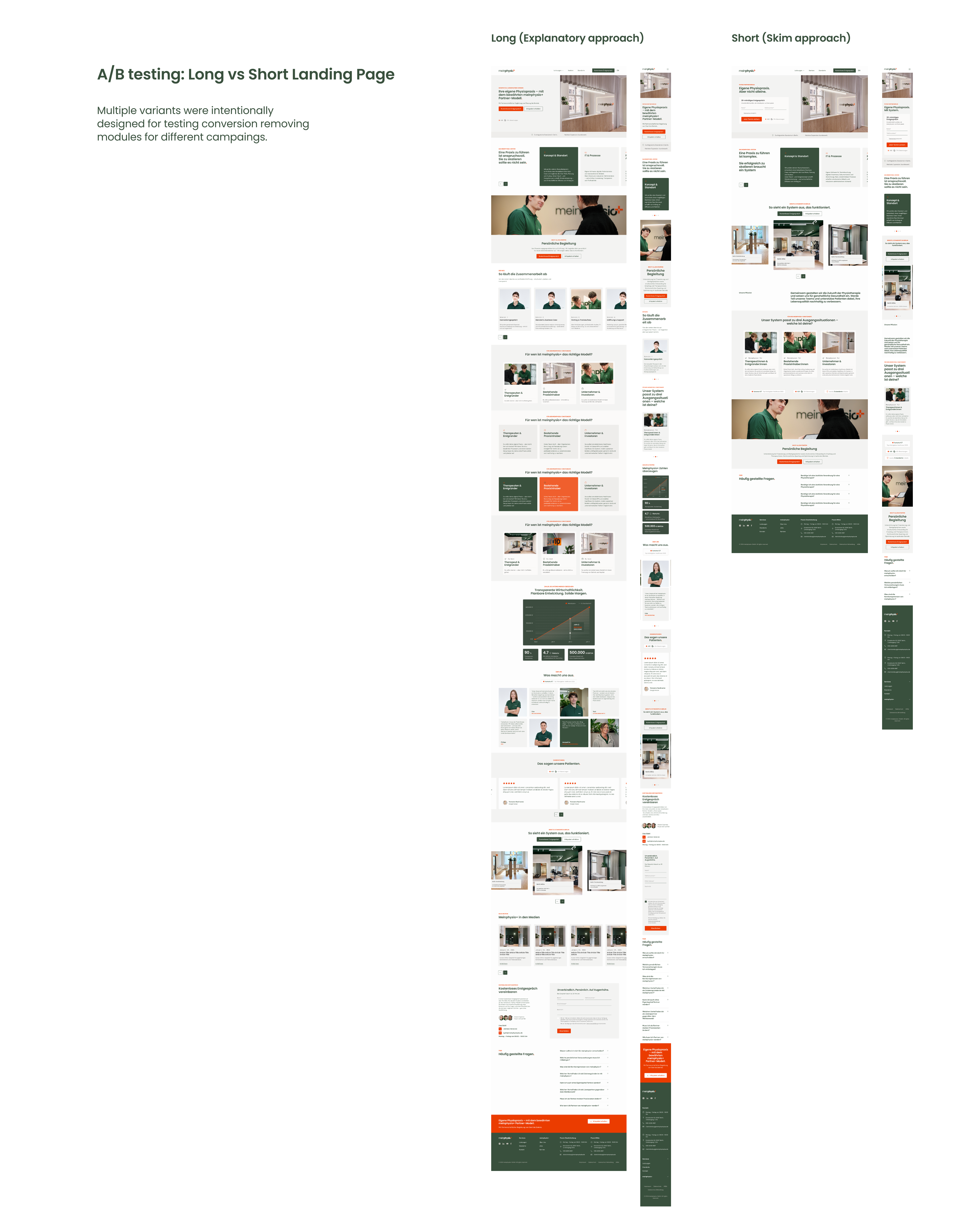 The challenge was designing a conversion system that could address multiple audiences — physiotherapists, practice owners and investors — each with different motivations and decision paths.